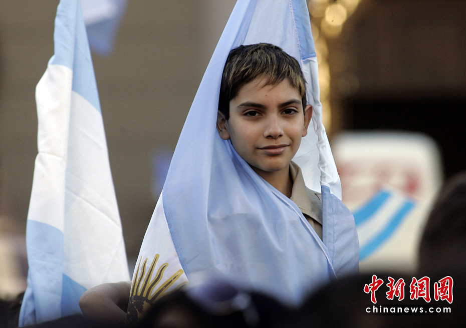 5月25日是阿根廷獨(dú)立200周年紀(jì)念日。在阿根廷首都布宜諾斯艾利斯人們舉行盛大的慶;顒蛹o(jì)念這一偉大的日子。圖片來源:中國新聞網(wǎng)