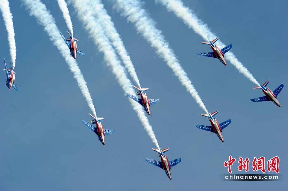 5月25日,法國(guó)巡邏兵特技飛行表演隊(duì)在普羅旺斯地區(qū)進(jìn)行驚險(xiǎn)的飛行表演。