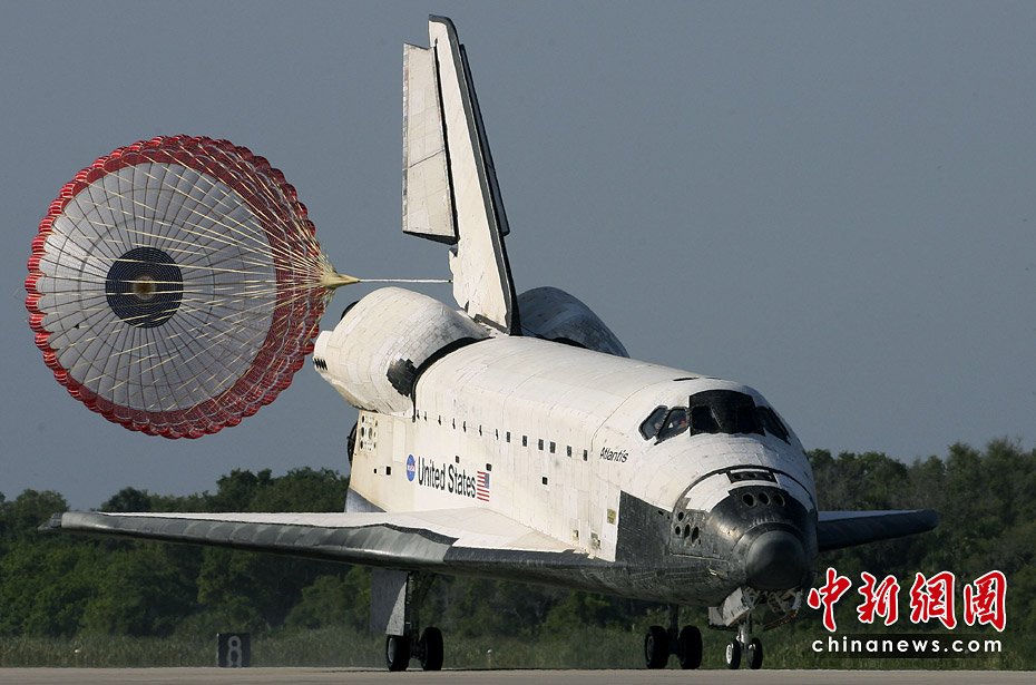 當(dāng)時(shí)時(shí)間5月26日上午8點(diǎn)48分,美國航天飛機(jī)“亞特蘭蒂斯”號順利降落在佛羅里達(dá)州肯尼迪航天中心。這是“亞特蘭蒂斯”號的最后一次任務(wù)。美國現(xiàn)役3架航天飛機(jī)——“亞特蘭蒂斯”號、“奮進(jìn)”號和“發(fā)現(xiàn)”號將于今年全部退役。圖片來源:中國新聞網(wǎng)