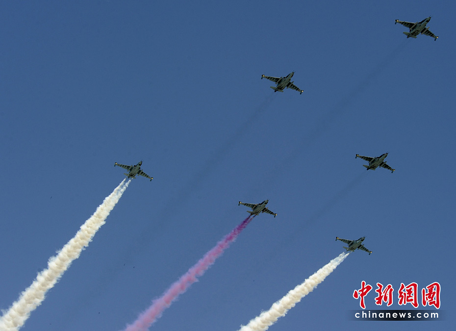 5月26日,在格魯吉亞首都第比利斯,受閱部隊從議會大廈前走過。當日,格魯吉亞在第比利斯舉行慶祝格獨立日閱兵典禮,格總統(tǒng)薩卡什維利在議會大廈前檢閱軍隊并發(fā)表演講。圖片來源:中國新聞網(wǎng)