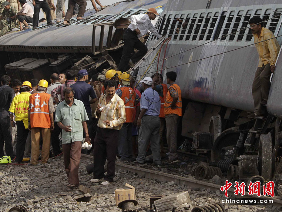 當(dāng)?shù)貢r間5月28日,印度一列特快列車在東部西孟加拉邦的西米德納布爾遭反政府武裝襲擊脫軌,造成百余人死傷。圖片來源:中國新聞網(wǎng)
