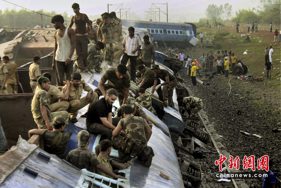 印度東部西孟加拉邦火車遇襲脫軌事故已經(jīng)發(fā)生30多個小時,29日救援人員繼續(xù)在現(xiàn)場進行搜救工作。西孟加拉邦警察局長表示,截至目前已經(jīng)發(fā)現(xiàn)110具尸體。同時仍有多達50人下落不明。圖為救援現(xiàn)場。