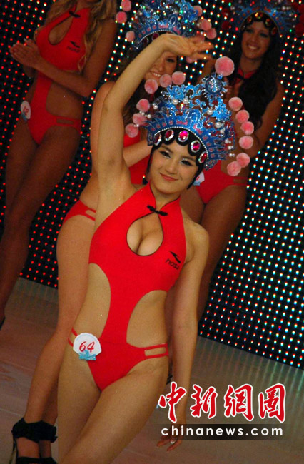 5月29日晚,第35屆國際比基尼小姐全球總決賽在三亞“美麗之冠”落下帷幕,22歲的羅馬尼亞選手Diana Irina Boanca摘得冠軍?倹Q賽還評選出了四季小姐,18歲的中國選手趙茜獲得“秋季小姐”,澳大利亞、委內(nèi)瑞拉和拉脫維亞選手分別獲得春、夏、冬季小姐。共有來自世界各地的64位佳麗參加了總決賽的角逐。當(dāng)晚,佳麗們展示了各自國家或地區(qū)特色的民族服飾,用不同的方式展示了不同風(fēng)格的比基尼“秀”,性感迷人。 中新社記者 尹海明攝