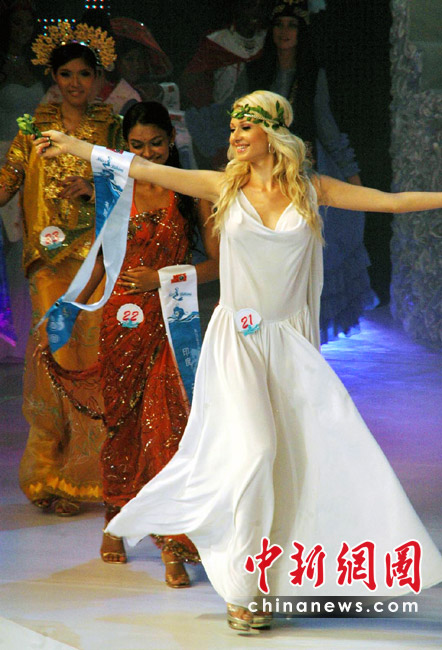 5月29日晚,第35屆國(guó)際比基尼小姐全球總決賽在三亞“美麗之冠”落下帷幕,22歲的羅馬尼亞選手Diana Irina Boanca摘得冠軍。總決賽還評(píng)選出了四季小姐,18歲的中國(guó)選手趙茜獲得“秋季小姐”,澳大利亞、委內(nèi)瑞拉和拉脫維亞選手分別獲得春、夏、冬季小姐。共有來自世界各地的64位佳麗參加了總決賽的角逐。當(dāng)晚,佳麗們展示了各自國(guó)家或地區(qū)特色的民族服飾,用不同的方式展示了不同風(fēng)格的比基尼“秀”,性感迷人。 中新社記者 尹海明攝