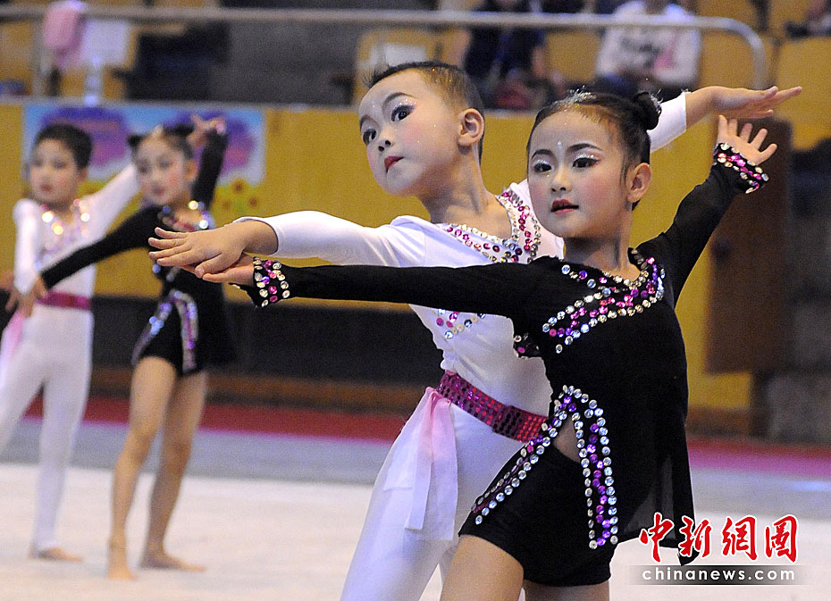 5月28日,小朋友表演幼兒基本體操。當(dāng)日,河南省平頂山市體育部門舉辦2010年幼兒基本體操表演大賽,來自全市21個(gè)幼兒園的270余名兒童參加表演,以體育健身的方式迎接“六一”國(guó)際兒童節(jié)的到來。中新社發(fā) 王雙正 攝