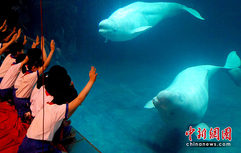 5月28日,北京海洋館從俄羅斯引進(jìn)的兩頭極地白鯨首次與游客見面。同時(shí),北京海洋館舉辦“攜手‘北極精靈’,共倡低碳生活”環(huán)保公益活動(dòng),呼吁人類應(yīng)該保護(hù)海洋環(huán)境,保護(hù)珍惜物種。中新社發(fā) 張宇 攝