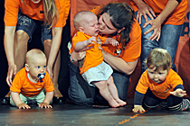 當?shù)貢r間5月31日,烏克蘭基輔舉行了寶寶爬行大賽。數(shù)十名嬰兒在母親的鼓勵下奮力向4米外的終點爬去。圖片來源:中國新聞網(wǎng)