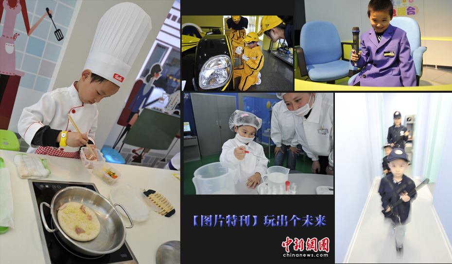 世博園里還有一塊孩子專(zhuān)屬的“領(lǐng)地”——育樂(lè)灣。設(shè)計(jì)者從孩子的認(rèn)知視角出發(fā),設(shè)計(jì)了25個(gè)具有行業(yè)代表性的職業(yè)體驗(yàn)場(chǎng)館,包括報(bào)社、出版社、警署、消防局、醫(yī)院、汽車(chē)維修保養(yǎng)、機(jī)器人制作公司等等。各個(gè)職業(yè)體驗(yàn)館的許多道具都是真實(shí)的。 體驗(yàn)迷你世界烤一回比薩、開(kāi)一回火車(chē)、錄一期節(jié)目、走一次秀……在這座4200平方米的小城,孩子們?cè)谕鏄?lè)中體驗(yàn)著未來(lái)的職業(yè)目標(biāo)。如果把世界博覽會(huì)比作連接現(xiàn)實(shí)與未來(lái)的一座“橋”,那么兒童就是這座“橋”上最引人注目的群體。兒童,是人類(lèi)希望的象征,是真正面向未來(lái)、掌握未來(lái)的人。中新網(wǎng)記者 王紅綱 攝