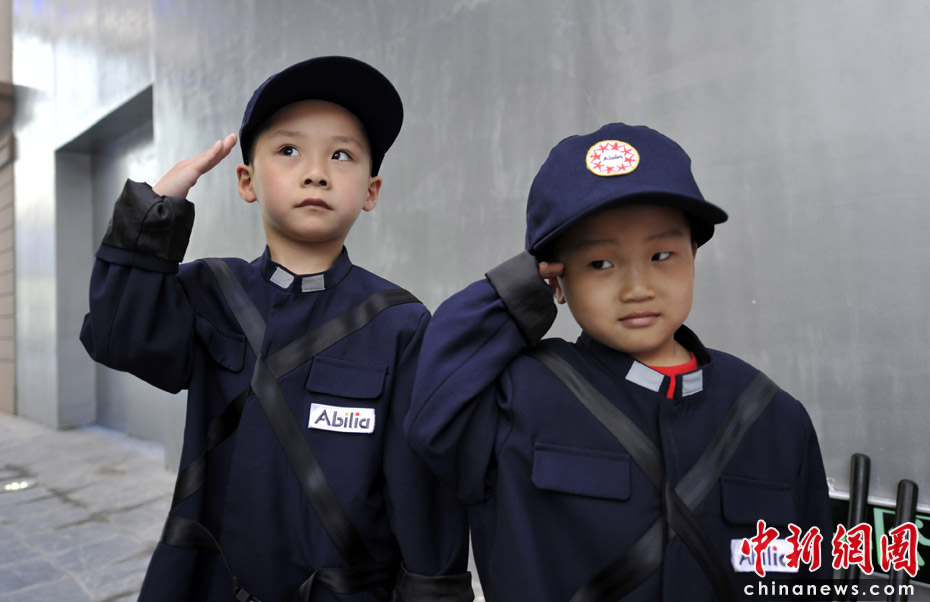 圖為孩子體驗做警察。 中新網(wǎng)記者 王紅綱 攝