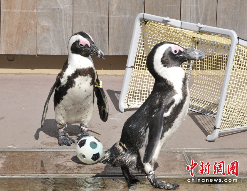 6月1日,在日本東京一家海洋館里,幾只企鵝“披掛上陣”,進(jìn)行了一場(chǎng)別開(kāi)生面的足球賽,迎接世界杯。