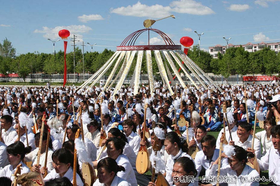 5月30日,新疆托里縣28個(gè)民族10495人共同參加冬不拉樂(lè)器表演,創(chuàng)下上海吉尼斯世界紀(jì)錄。萬(wàn)人同奏的哈薩克族樂(lè)曲名為《凱乃斯》,漢語(yǔ)意為“和諧”。圖片來(lái)源:中國(guó)新聞網(wǎng)>>點(diǎn)擊觀看詳細(xì)內(nèi)容