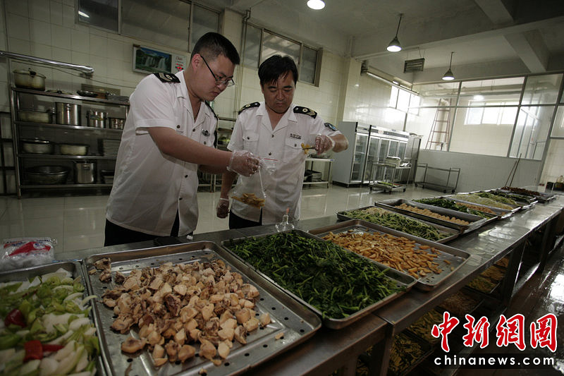 2010年6月4日,山東省濰坊市衛(wèi)生系統(tǒng)的工作人員檢查濰坊城區(qū)的高考考點(diǎn)食堂,為高考“保駕護(hù)航”。對(duì)此,高新區(qū)衛(wèi)生局購置了針對(duì)農(nóng)殘、亞硝酸鹽、重金屬等快速檢測(cè)的食品安全快速檢測(cè)設(shè)備,確?忌嬍嘲踩。孫樹寶/CFP