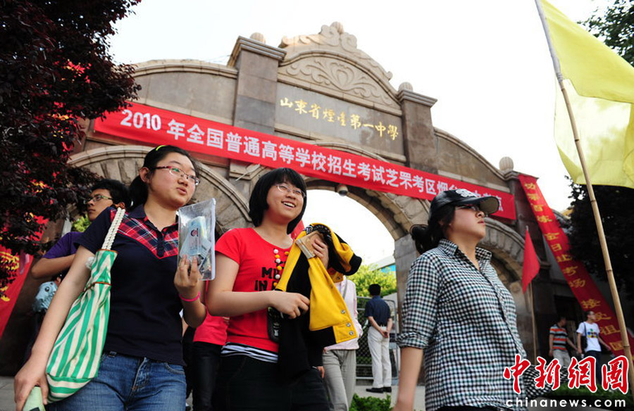2010年6月6日,即將參加高考的考生熟悉完煙臺(tái)一中考點(diǎn)后,充滿自信地走出校門(mén)。初陽(yáng)/CFP