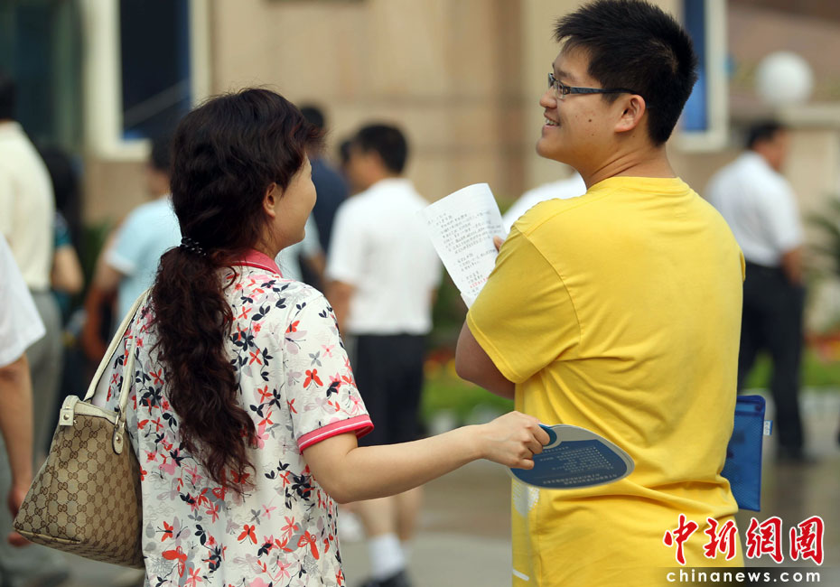 6月7日,為期兩天的2010年普通高等學(xué)校招生全國統(tǒng)一考試開考,全國將有957萬考生走進(jìn)考場。圖為母親為兒子扇風(fēng)降溫。中新社發(fā) 蘇丹 攝