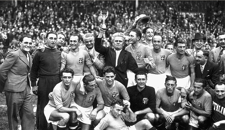 1938年,國際足聯(lián)決定表彰主席雷米特的功勛,由他的祖國法國舉辦世界杯,這激怒了對主辦權志在必得的阿根廷,他們和烏拉圭等國一同退出,只有巴西代表南美出戰(zhàn)。在歐洲,戰(zhàn)爭陰云籠罩,奧地利被德國吞并,西班牙受內戰(zhàn)困擾,英國繼續(xù)缺席,最終15個國家參加比賽,二戰(zhàn)前的最后一屆世界杯在紛擾中開幕。