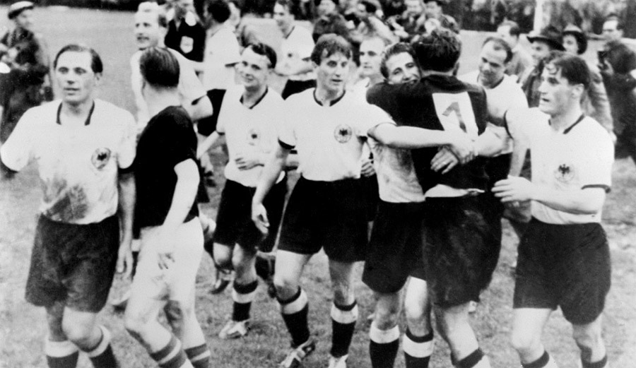 選擇瑞士承辦1954年世界杯,因?yàn)閲H足聯(lián)總部在該國的蘇黎世,而且適逢FIFA成立50年慶典。36支國家隊(duì)參加了預(yù)選賽,16支隊(duì)伍晉級(jí)決賽圈,韓國、蘇格蘭和土耳其第一次躋身世界杯大家庭。在巴塞爾、伯爾尼、洛桑、蘇黎世和日內(nèi)瓦五個(gè)主辦城市舉行的世界杯比賽達(dá)到了極高的水平,26場(chǎng)比賽打進(jìn)了難以置信的140個(gè)進(jìn)球,西德7比2土耳其、西德6比1奧地利、匈牙利8比3西德、匈牙利9比0韓國、烏拉圭7比0蘇格蘭,一場(chǎng)接一場(chǎng)的進(jìn)球秀,讓觀眾大飽眼福。最瘋狂的一場(chǎng)比賽出現(xiàn)在1/4決賽,奧地利7比5擊敗瑞士,雙方聯(lián)手貢獻(xiàn)12球!這場(chǎng)比賽也因此載入了史冊(cè),成為了世界杯歷史上單場(chǎng)進(jìn)球最多的比賽。