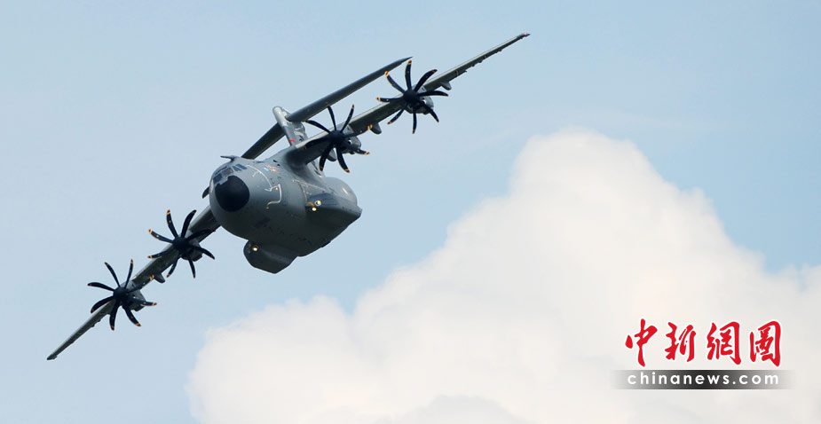6月8日,德國(guó)柏林,一架空中客車A400M軍用運(yùn)輸機(jī)在2010年柏林國(guó)際航空展上試飛。