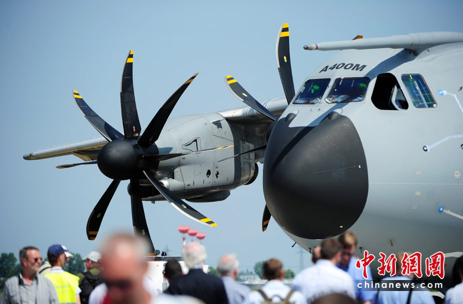 6月8日,德國柏林,一架空中客車A400M軍用運(yùn)輸機(jī)在2010年柏林國際航空展上試飛。
