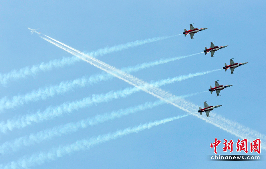 2010年柏林國際航空展于當(dāng)?shù)貢r(shí)間6月8日在德國柏林舍內(nèi)費(fèi)爾德機(jī)場(chǎng)開幕。9日,瑞士飛行表演隊(duì)在航展上演了精彩的飛行表演。圖片來源:中國新聞網(wǎng)