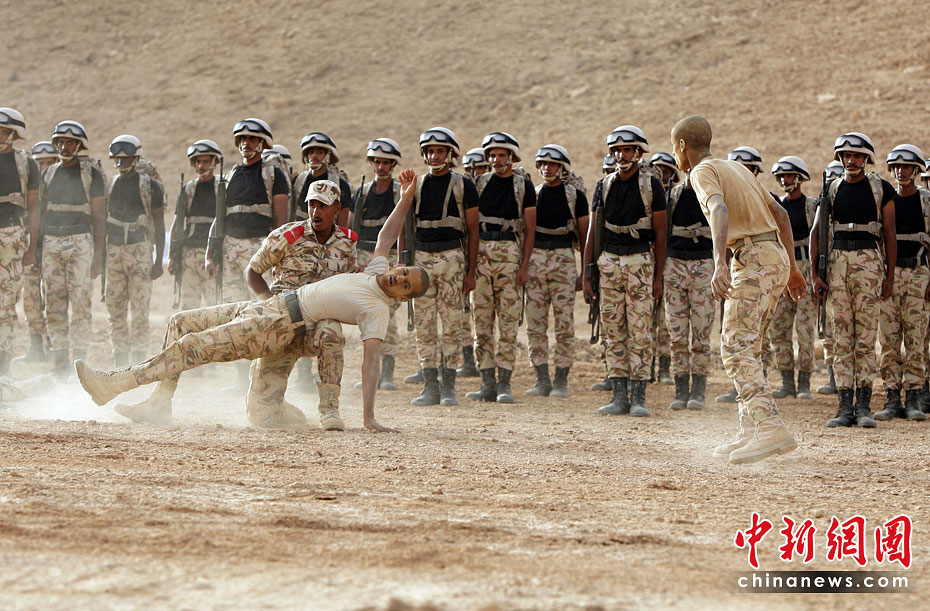 當地時間6月9日,在沙特阿拉伯的利雅得,沙特特種兵學員在畢業(yè)表演中展示所學技能。圖片來源:中國新聞網