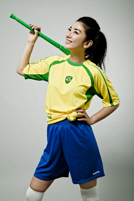 近日,黃奕身穿巴西隊球衣拍攝了一組世界杯足球?qū)懻,為南非世界杯助威喝彩?/p>