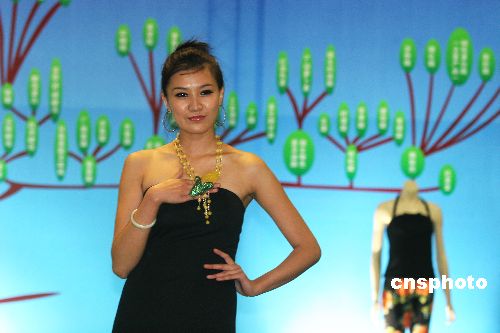 2007年11月1日,第七屆中國糧油精品展示交易會上演了多場特殊的時裝秀。模特們身上穿著的精美時裝,都是用大豆纖維和玉米蛋白合成纖維精制而成的。這種“食品時裝”在給觀眾帶來視覺沖擊的同時也從新的角度展現(xiàn)了糧食深加工的魅力。中新社發(fā) 鄭晨烜 攝