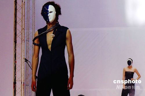 圖為戴面具的模特展示上海大學(xué)巴黎國(guó)際時(shí)裝藝術(shù)學(xué)院的原創(chuàng)服飾。據(jù)悉,該作品靈感來(lái)源于被壓抑的現(xiàn)代都市人。中新社發(fā) 孟幻 攝