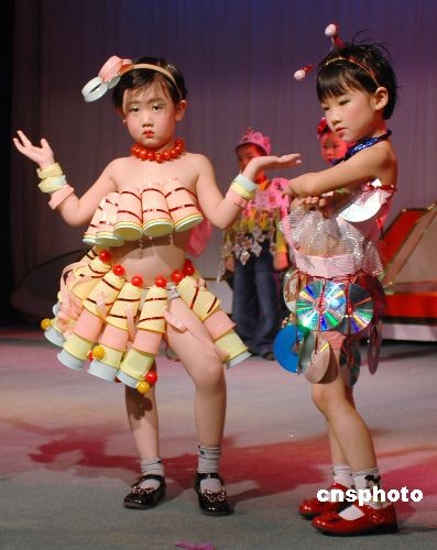 10月30日,安徽省蕪湖市在少年宮舉辦首屆青少年科普運(yùn)動會環(huán)保時裝秀比賽,來自28所中小學(xué)共280名學(xué)生參賽。孩子們身著用報紙、包裝袋、塑料瓶、樹葉等廢舊材料制成的時裝,以各種獨(dú)特的藝術(shù)造型展現(xiàn)“保護(hù)環(huán)境、節(jié)約能源”的環(huán)保理念。中新社發(fā) 陳立希 攝