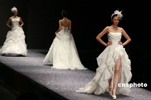 2008年11月7日,中國(guó)國(guó)際時(shí)裝周(2009春夏)舉行“名瑞杯”2008中國(guó)婚紗設(shè)計(jì)大賽(Famory Cup China Wedding Dress Design Contest 2008)。共有來(lái)自14個(gè)地區(qū)的25份稿件入圍了最后的決賽,角逐此次大賽的各個(gè)獎(jiǎng)項(xiàng)。經(jīng)典的白紗和今年非常流行的蕾絲面料是主角,選手們用了層疊,堆積的表現(xiàn)手法,使得并不新穎的面料有了新鮮的感覺(jué),給人們?cè)斐刹煌,特別的視覺(jué)效果。自由設(shè)計(jì)師吳小珍的作品《女人花》最終獲得金獎(jiǎng)。中新社發(fā) 魯谷 攝