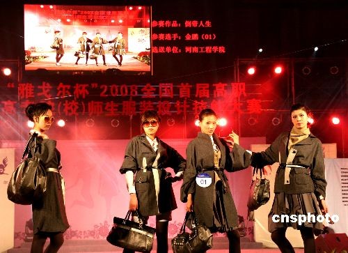12月11日晚,中國(guó)高職院校服裝設(shè)計(jì)技能大賽在揚(yáng)州舉行。共有來(lái)自江蘇、安徽、河北、江西、湖北、廣西、北京、重慶、新疆、內(nèi)蒙古等10多個(gè)省市自治區(qū)的53所高職高專院校設(shè)計(jì)作品911件,經(jīng)專家組初評(píng),有64個(gè)系列作品入圍決賽,最終評(píng)選出2個(gè)金獎(jiǎng)、12個(gè)銀獎(jiǎng)、24個(gè)銅獎(jiǎng)和最佳效果圖獎(jiǎng)、最佳工藝獎(jiǎng)等6個(gè)單項(xiàng)獎(jiǎng)。中新社發(fā) 崔佳明 攝