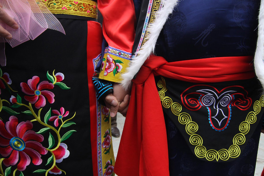 4月26日,四川省北川縣政府在擂鼓鎮(zhèn)吉娜羌寨為20對“5·12”大地震后重組家庭夫婦舉行集體婚禮。北川官方為他們舉行壩壩喜宴,每對新人約請8名親朋好友參加;閼c活動結(jié)束后,新人們將前往海南,享受政府提供價值10萬元的厚禮——三亞五日蜜月旅行。這是北川自2003年成立羌族自治縣以來舉行的首場集體婚禮。由政府出資,專為北川籍震后重組家庭操辦的。此次活動有利于災(zāi)民看到人生的希望,走出地震陰影,開始新的生活,“建起精神家園”的意義。 中新社發(fā) 郭國權(quán) 攝