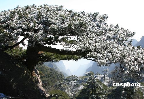 12月6日,安徽黃山風(fēng)景區(qū)迎來今年入冬以來第一場雪。7日,雪止轉(zhuǎn)晴,氣溫驟降,黃山始信峰景區(qū)出現(xiàn)晶瑩剔透的雪松奇觀,“處處皆是琉璃界、時時身在水晶宮”的奇妙感覺,是一道獨(dú)具魅力的迷人景色,令游客嘆為觀止。中新社發(fā) 方也廣德 攝