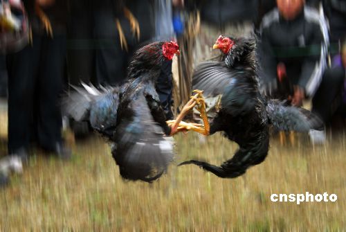 2月8日,大年初二,安徽淮北市童亭礦工會(huì)舉辦了一場(chǎng)斗雞比賽。10多對(duì)體型高大,魁梧強(qiáng)健,性情兇猛的斗雞,面對(duì)對(duì)手個(gè)個(gè)針鋒相對(duì),動(dòng)作敏捷,嘴腿并用,重爪烈翅,騰閃擊打。據(jù)了解,斗雞是我國(guó)古老的玩賞型雞種,有著數(shù)千年歷史,斗雞場(chǎng)面激烈緊張,極富刺激性和觀賞性。中新社發(fā) 胡珍玲(安徽) 攝