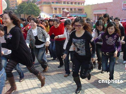 3月6日,長沙世界之窗廣場內(nèi),千余名女士穿著4厘米以上的細跟高跟鞋賽跑,用這種特殊的方式紀念奧運年的婦女節(jié),并為北京奧運加油。中新社發(fā) 肖前輝 攝