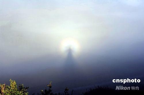 7月8日早晨,新疆喀納斯景區(qū)上空出現(xiàn)大片云霧,在陽光的直射下,出現(xiàn)了罕見的“佛光”奇觀?{斯景區(qū)位于新疆西北部,北與哈薩克斯坦、俄羅斯、蒙古交界。神秘的湖怪、令人費(fèi)解的枯木長堤、暗藏水下的湖底森林、以及奇異壯觀的云海“佛光”是新疆喀納斯景區(qū)最著名的“四大奇觀”。中新社發(fā) 康劍 攝
