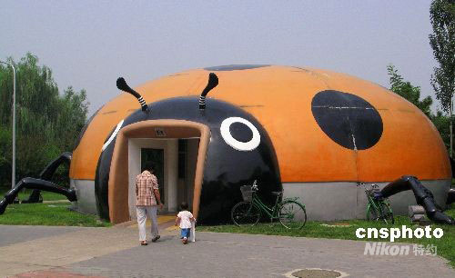北京公廁在2008年發(fā)展中愈來愈千奇百怪,為目前北京將要開幕的殘奧會(huì)增加了色彩。圖為朝陽公園的七星瓢蟲公廁博得廣大兒童的認(rèn)可、喜愛。中新社發(fā) 鄒憲 攝