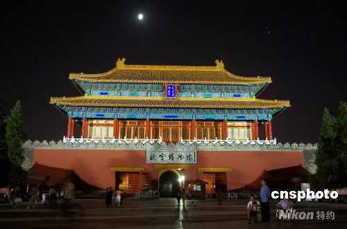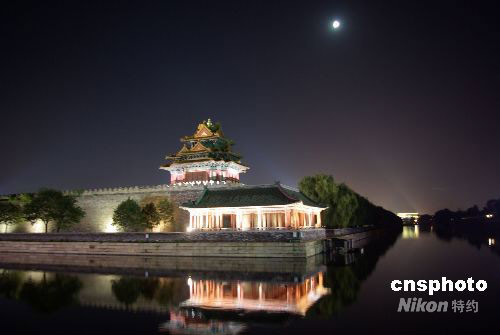 9月11日,中秋節(jié)即將到來(lái),晚上北京明月高懸,故宮夜景美麗醉人。中新社發(fā) 九州 攝