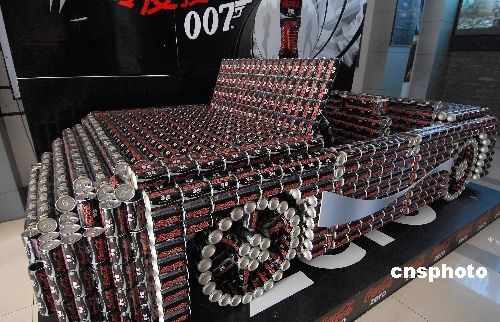 2008年11月5日,一輛由數(shù)百只飲料空易拉罐組成的“汽車”出現(xiàn)在杭州街頭,頗受市民關(guān)注。中新社發(fā) 引煒 攝