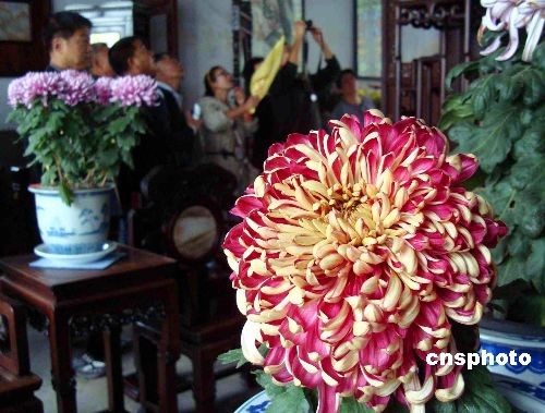 2008年11月6日,游客在蘇州獅子林觀賞菊花。正在蘇州古典園林獅子林舉辦的“2008蘇州園林系統(tǒng)菊花評(píng)比展”上,5000余盆千姿百態(tài)的菊花爭(zhēng)奇斗艷,令眾多中外游人陶醉其中,流連忘返。中新社發(fā) 王建康 攝