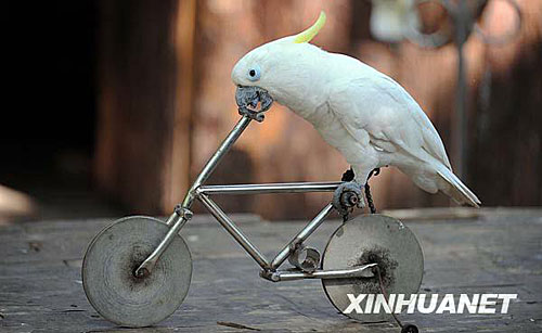在云南省西雙版納傣族自治州景洪市野象谷景區(qū)內(nèi),有幾十只聰明的鸚鵡能進(jìn)行騎自行車、投籃及撿拾垃圾等精彩表演,為游客增添了樂趣。新華社記者藺以光攝