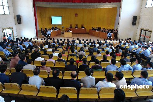 | 8月3日,云南省昭通市中級人民法院依法對由公安部掛牌督辦、云南省公安廳特別督辦的鎮(zhèn)雄縣林業(yè)局林政稽查大隊隊長范澤忠(別名范曉)等黑社會團伙案進行公開宣判。一審以組織、領(lǐng)導黑社會性質(zhì)組織罪、故意殺人罪、故意傷害罪、聚眾斗毆罪、尋釁滋事罪、組織賣淫罪數(shù)罪并罰,范澤忠被判處死刑,剝奪政治權(quán)利終身,并處沒收個人全部財產(chǎn)。其他作案人員按照相關(guān)法律規(guī)定分別被定罪量刑。中新社發(fā) 車應(yīng)華 攝