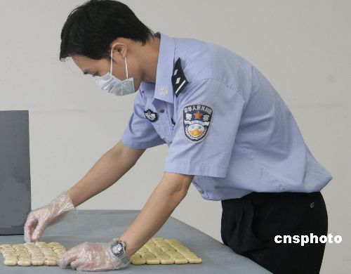 近期,廣州海關(guān)連續(xù)查獲多起毒品走私案件。從九月二十五日至十月九日,廣州海關(guān)連續(xù)查獲14宗毒品走私案,抓獲十五名涉案嫌疑人,僅人體藏匿海洛因走私入境案就達(dá)九宗。其中一人毒品滯留體內(nèi)十九天,另一人體內(nèi)藏毒一千九百多克,時(shí)間之長、重量之多,在廣州海關(guān)緝私局偵辦的人體藏毒走私案件中均屬前所未有。中新社發(fā) 陳國華 攝