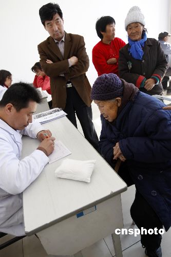 11月1日,北京市扶貧濟(jì)困春風(fēng)行動(dòng)辦公室和博愛堂中醫(yī)門診部聯(lián)合來(lái)到北京平谷劉家店,為農(nóng)民進(jìn)行義診活動(dòng)。由于距離城市太遠(yuǎn),許多農(nóng)民沒(méi)有機(jī)會(huì)去城市大醫(yī)院看病,使的小病慢慢積累成疾病,醫(yī)療下鄉(xiāng)活動(dòng)使得農(nóng)民在第一時(shí)間就能得到醫(yī)療幫助。中新社發(fā) 杜洋 攝