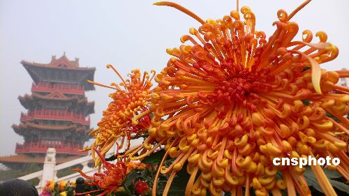 11月14日,河南開(kāi)封市清明上河園里盛開(kāi)的菊花。眼下,進(jìn)入寒冷冬季,古城開(kāi)封公園景點(diǎn)里的多種菊花依然鮮花盛開(kāi)、耐寒傲霜,給冬日的人們帶來(lái)一股暖意。中新社發(fā) 凱楓 攝