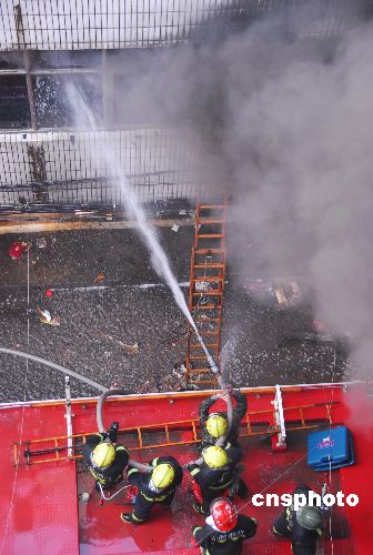 11月20日上午10時許,安徽蚌埠市區(qū)最大的小商品批發(fā)市場——太平街批發(fā)市場2號營業(yè)大廳發(fā)生火災(zāi),一層大廳2000平方米的近百攤位全部陷入火海中。一個多小時后,火勢又蔓延到二樓倉儲區(qū)。截至下午4時,余火仍在撲救中。目前沒有人員傷亡報告,經(jīng)營戶貨品財物損失很大。 中新社發(fā) 安徽張建平 攝