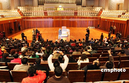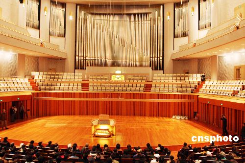 中國國家大劇院將于12月22日和23日舉辦盛大開幕音樂會,并由此拉開國家大劇院首個演出季的帷幕。作為最重要演出的開幕音樂會,其開幕式音樂會的音樂總監(jiān)陳佐煌特意在節(jié)目演出的安排上凸顯了中國文化,邀請的樂團、指揮家、演奏家均來自中國。據(jù)悉,本場音樂會將推出最具代表性的古箏、二胡、琵琶、笛子和揚琴,由當今中國民族音樂界五位頂級演奏家馬曉輝、吉煒、張強、龐波兒和戴亞聯(lián)袂演出經(jīng)典民樂作品。圖為藝術(shù)家參觀國家大劇院音樂廳。中新社發(fā) 鄭雄增 攝