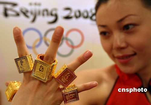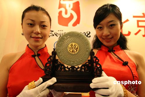 十二月十九日,由北京繁榮文化發(fā)展有限公司推出的五十余款奧運紀念章與消費者見面,此舉使得北京奧運特許商品這一大家族又增添了“新成員”。這些限量發(fā)行的“新成員”,多為大眾化商品,價格在一百元人民幣的就有二十多種,內(nèi)容涉及不同題材,如體育、科技、文化、城市等,其中最吸引人的還是設計制作獨特的奧運金章玉璧等高端商品。中新社發(fā) 任海霞 攝