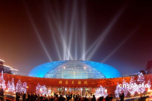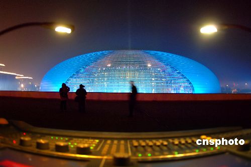 12月20日,北京國家大劇院測試首個演出季的外部燈光效果,藍色的燈光和背后高功率射燈將國家大劇院裝扮得夢幻迷人。據(jù)悉,本次開幕國際演出季將從2007年12月22日持續(xù)到2008年4月6日,期間將有78個劇目、180場精彩演出在這里隆重上演,其中三分之一為國外劇目,涵蓋了歌劇、舞劇、音樂會、話劇、民族戲曲五大藝術門類,預計接納觀眾30萬人次。中新社發(fā) 廖攀 攝