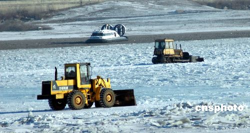 12月24日,大型機(jī)械在封凍的中俄界河黑龍江上推冰道。據(jù)黑河口岸披露:為順利開(kāi)展黑河口岸與俄羅斯布市口岸冰上汽車跨國(guó)運(yùn)輸,12月26日,中方運(yùn)輸領(lǐng)導(dǎo)小組成員將赴俄羅斯布拉戈維申斯克市與俄方運(yùn)輸領(lǐng)導(dǎo)小組進(jìn)行會(huì)談。預(yù)計(jì)近期將開(kāi)通黑龍江上汽車運(yùn)輸,封凍的黑龍江將成為國(guó)際運(yùn)輸?shù)拇笸ǖ馈V行律绨l(fā) 邱齊龍 攝