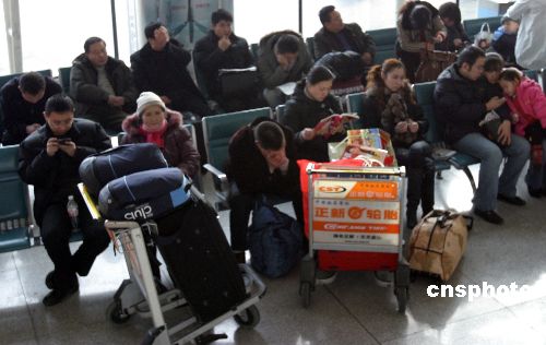 1月2日上午,烏魯木齊國(guó)際機(jī)場(chǎng)出現(xiàn)大霧天氣,致使部分航班延誤,數(shù)百名乘客滯留機(jī)場(chǎng)。記者從機(jī)場(chǎng)問(wèn)訊處獲悉,因?yàn)豸斈君R國(guó)際機(jī)場(chǎng)被大霧籠罩,能見(jiàn)度不符合飛機(jī)降落標(biāo)準(zhǔn),成都—烏魯木齊、北京—烏魯木齊等國(guó)內(nèi)航班被迫備降敦煌機(jī)場(chǎng),導(dǎo)致從烏魯木齊飛往成都和北京等地的乘客滯留機(jī)場(chǎng)。據(jù)了解,烏魯木齊到庫(kù)爾勒、伊寧等地的疆內(nèi)航班沒(méi)有受到影響,仍可正常起飛。截至發(fā)稿時(shí),機(jī)場(chǎng)大霧仍未退去,乘客們?nèi)栽诘却鞖夂棉D(zhuǎn)。中新社發(fā) 李雄心 攝